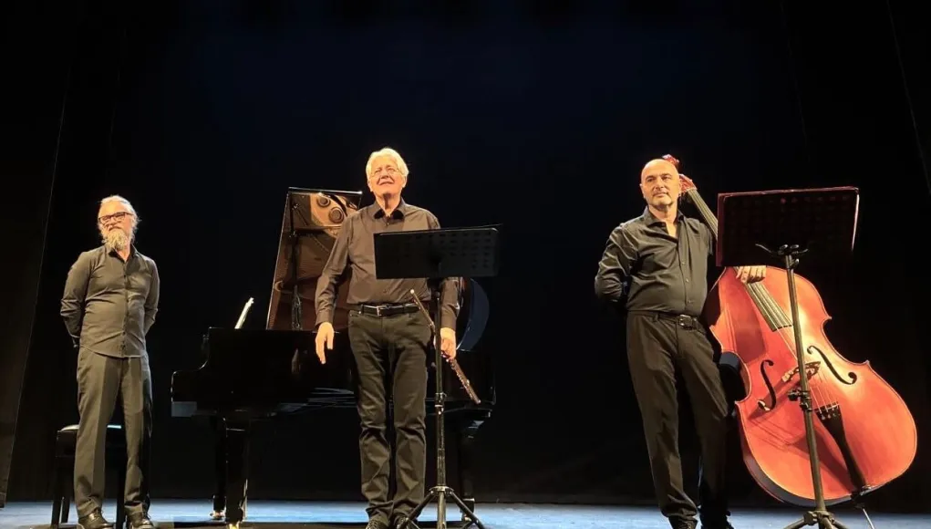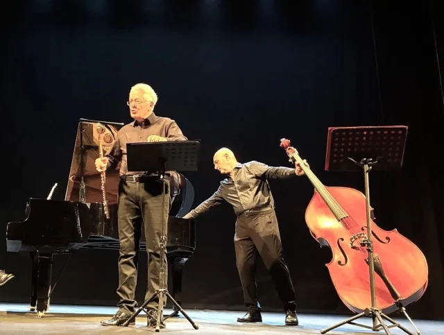 L’esecuzione della Suite n.1 di Bolling ha subito tracciato la rotta: Baroque and Blue, Sentimentale e Veloce hanno danzato tra swing e contrappunto, con il flauto protagonista di un serrato dialogo con il piano e il contrabbaso.
