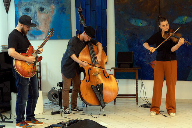 Un altro spazio insolito ed estremamente gradevole, la scuola d’arte Kunststation Rheinelbe, ha accolto il trio del contrabbassista Moritz Götzen, con Julia Brussel al violino e Jonas Mersbach alla chitarra. Una proposta acustica, con la chitarra elettrica appena amplificata, melodie delicate, buona interazione, tra sfumature manouche, jazz tradizionale, atmosfere di matrice popolare e accennate aperture verso approcci contemporanei.