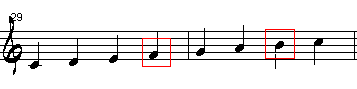 Il FA, IV grado della scala, “cozza decisamente”. Potrebbe essere usato come nota di passaggio, come ritardo, come appoggiatura, come ammorbidente per i capi delicati ma non certo come estensione dell’accordo di C maggiore. Questa melodia, per esempio, ha qualcosa di storto.